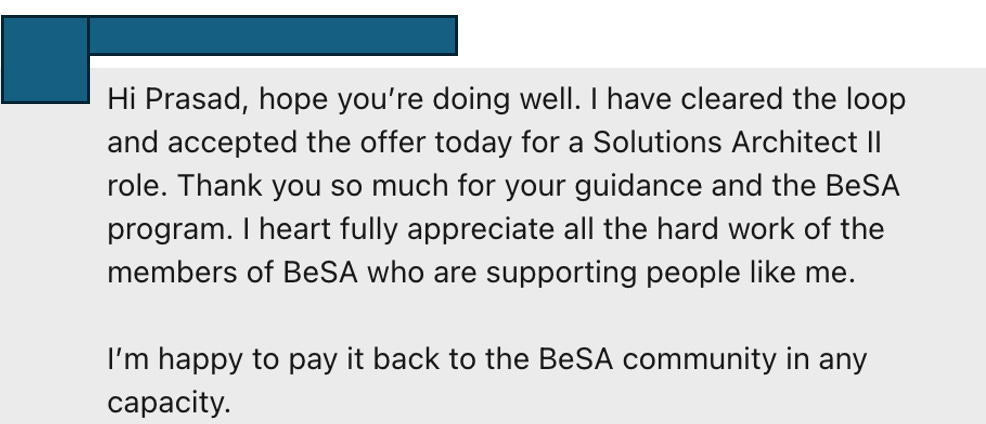 In this week's article, I share how we started the BeSA (Become a Solutions Architect) free mentoring program and everything you want to know about the upcoming batch.