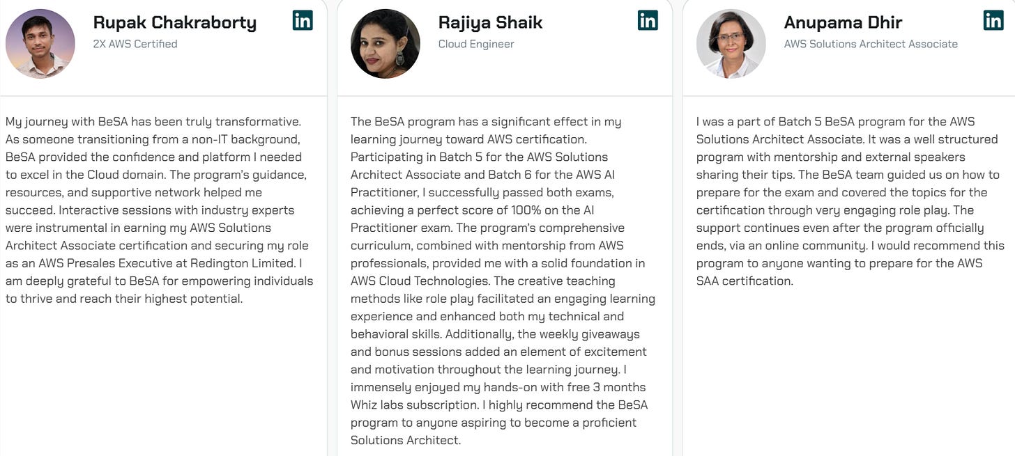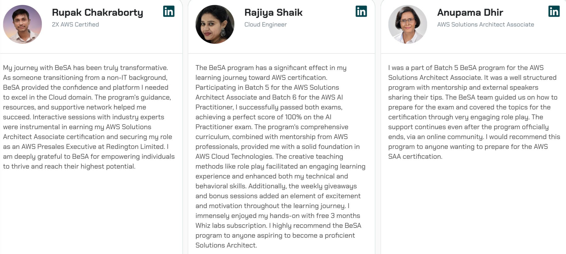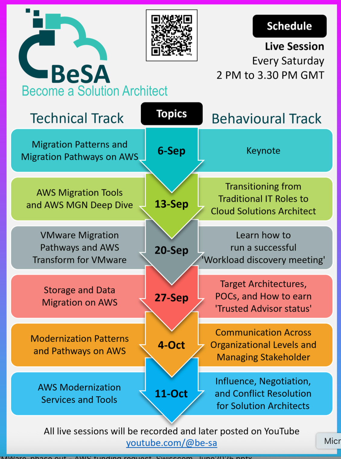The name was coined by Ashish—BeSA (Become a Solutions Architect)—and it instantly hit the chord with all of us.