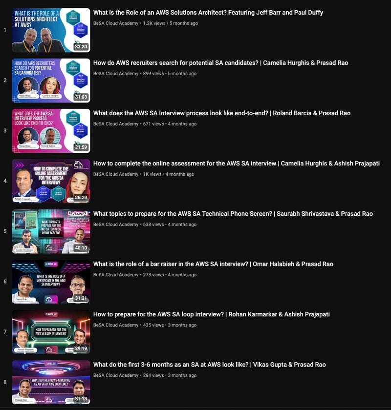 One of the most popular BeSA track has been playlist for AWS Solutions Architect Interview Process, where we had AWS leaders as guest speakers share their insights.