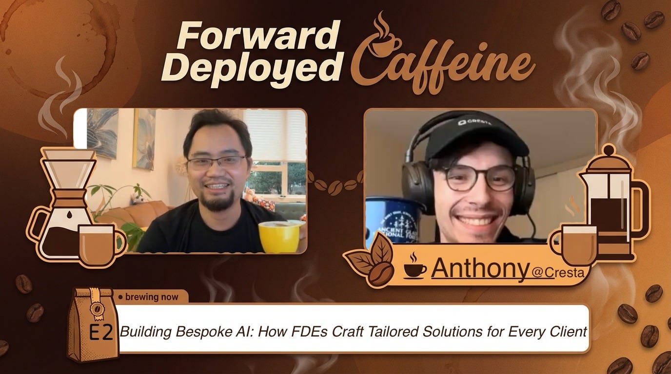 I encourage you to subscribe to his Forward-Deployed Caffeine podcast for more conversations with FDEs from different companies and verticals.