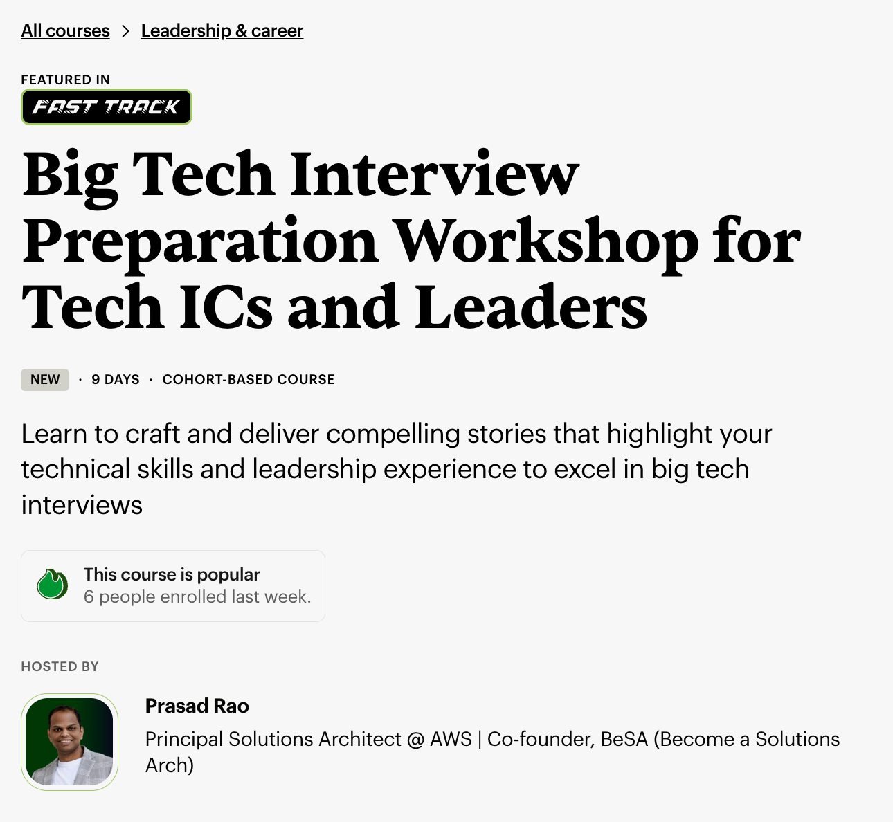 Read the full details of workshop here - https://maven.com/prasad-rao/big-tech-interview-workshop.
