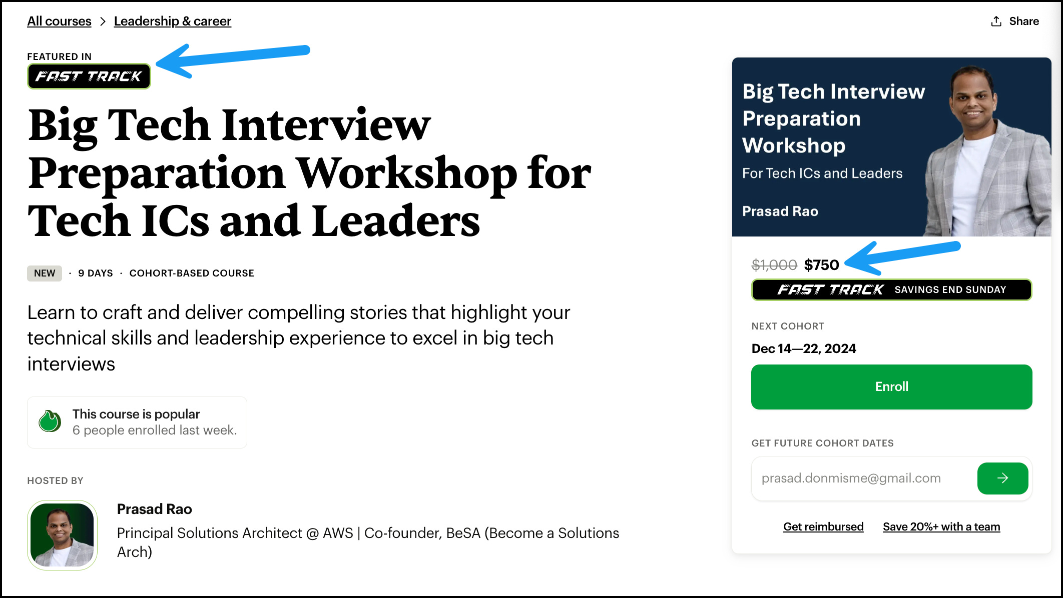 I’m excited to announce that Maven has chosen Big Tech Interview Preparation workshop for one of their top “Fast Track” courses!