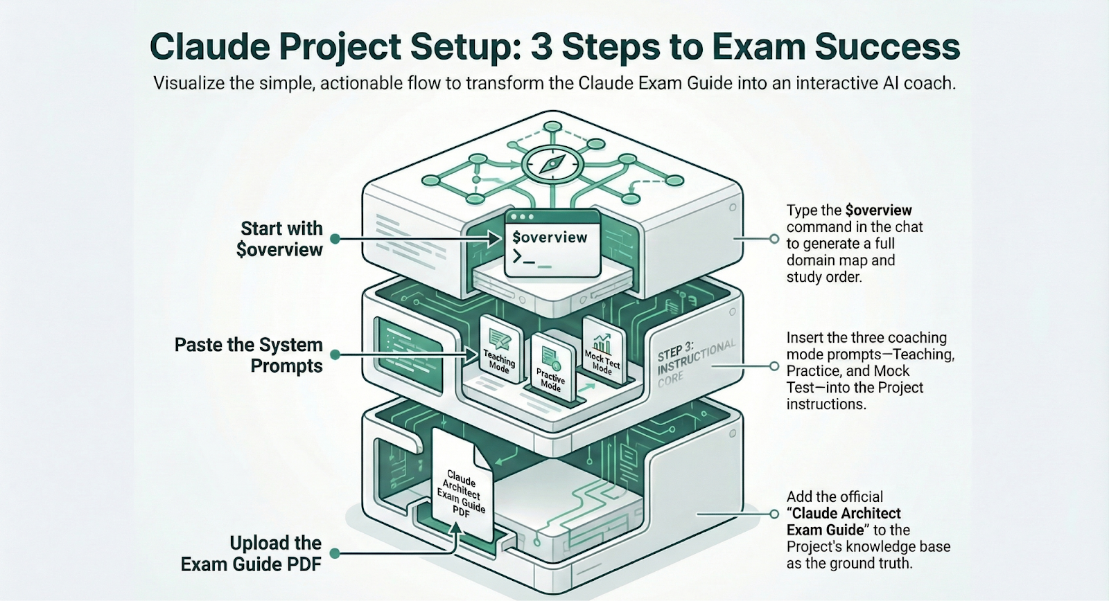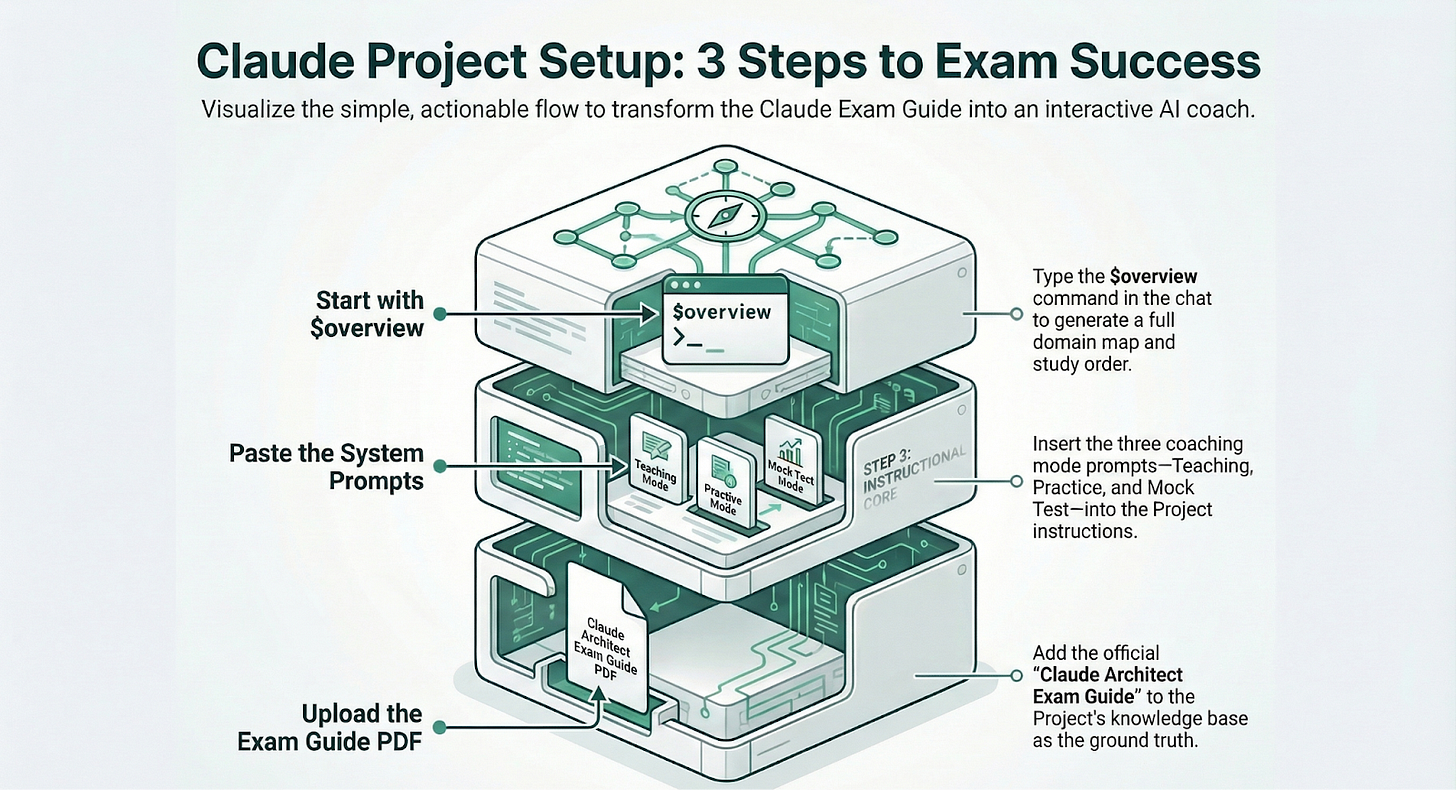 The system runs within one Claude project. Upload the exam guide once, and all modes will use it across sessions. I'll first explain how I used it over 5 days to pass the exam, and then walk you through how you can set it up for your own preparation.