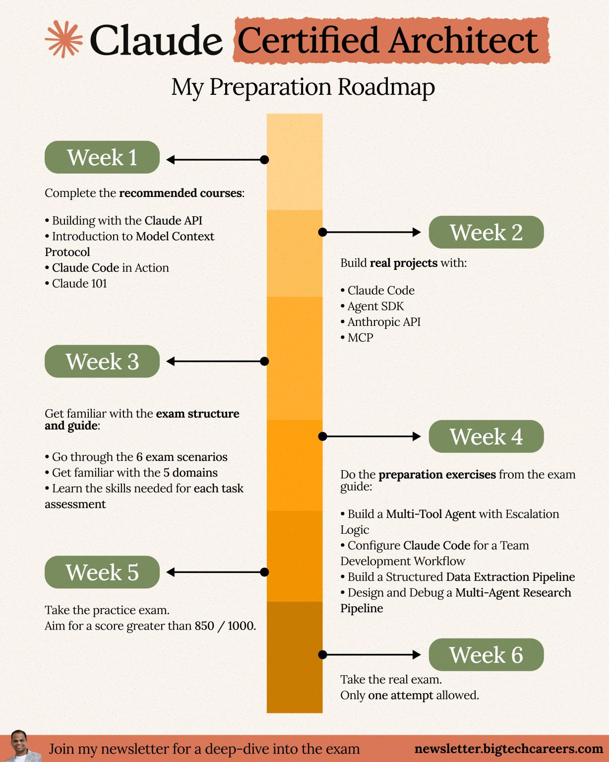 A quick note before we dive in: Sarvesh cleared the exam in 5 days because he has hands-on experience with Claude and works with it on a daily basis. If you are someone starting fresh, take the framework below as a 5-week program rather than a 5-day one.