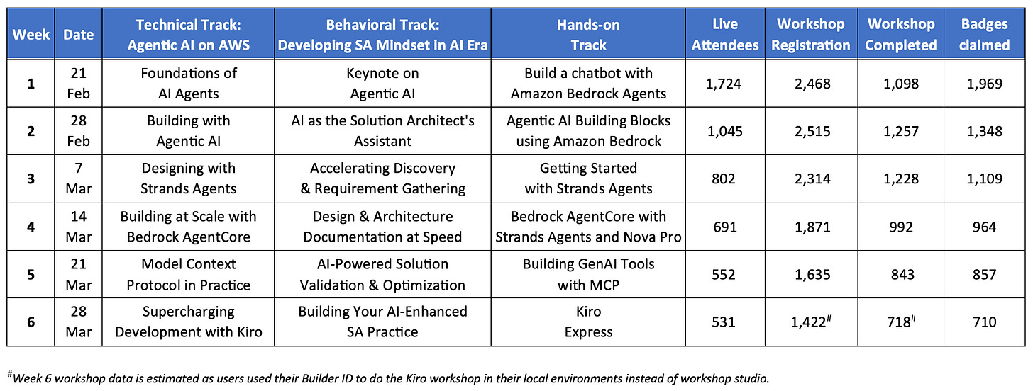 In this week’s article, I share the report of the recent BeSA Q1 2026 cohort we completed on Agentic AI on AWS. It includes the exact report we sent to our leadership.