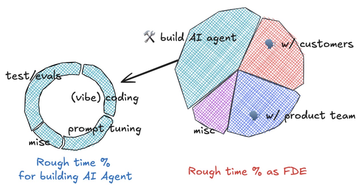 FDE builds the AI agent, not just configure in the web console, edit yaml file, or push the deploy button. There is a lot of engineering effort and expertise for prompt engineering, context engineering, model tuning, test/evaluation, mocking, security hardening.